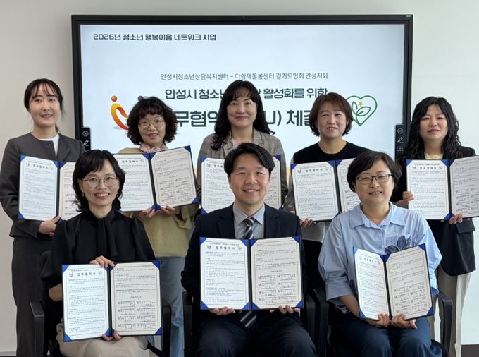 (중부시사신문) 안성시청소년상담복지센터는 지난 27일 안성맞춤공감센터에서 다함께돌봄센터 경기도협의회 안성지회와 청소년의 건강한 성장과 복지 증진을 위한 업무협약(MOU)을 체결했다.