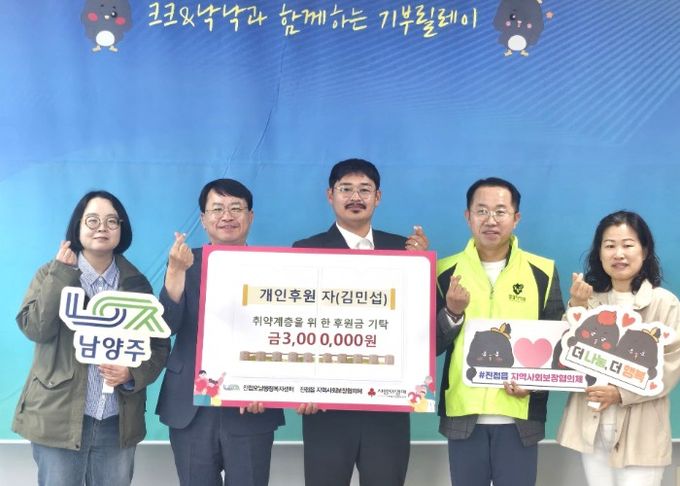 (중부시사신문) 남양주시는 29일 진접오남행정복지센터에서 김민섭씨가 취약계층 지원을 위해 후원금 300만 원을 전달했다고 밝혔다.