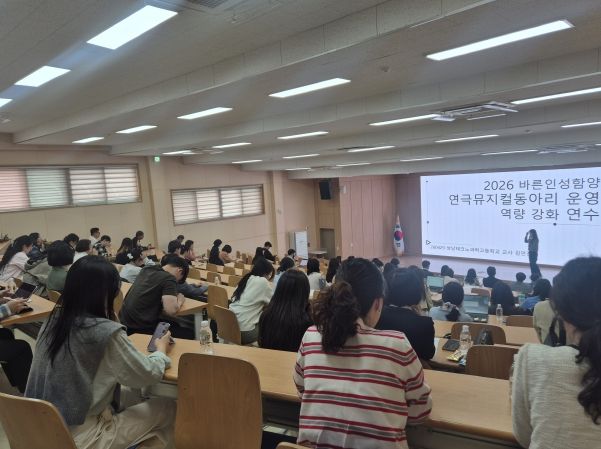 (중부시사신문) 충남교육청은 29일, 충청남도교육청교육연수원(공주)에서 2026학년도 ‘바른 인성 함양 연극・뮤지컬 지도교사 배움자리’를 개최했다. 이날 행사는 도내 초중고 연극·뮤지컬 동아리 지도교사 80여 명을 비롯해 14개 교육지원청 담당 장학사, 충남교육연극협회 운영진 등 총 120여 명이 참석했다.