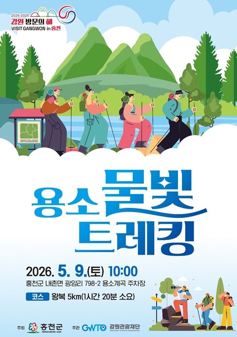 (중부시사신문) 강원관광재단은 홍천군과 함께 오는 5월 9일 오전 10시 홍천군 내촌면 용소계곡 일원(광암리 798-2)에서 ‘용소 물빛 트레킹’ 행사를 개최한다고 밝혔다.