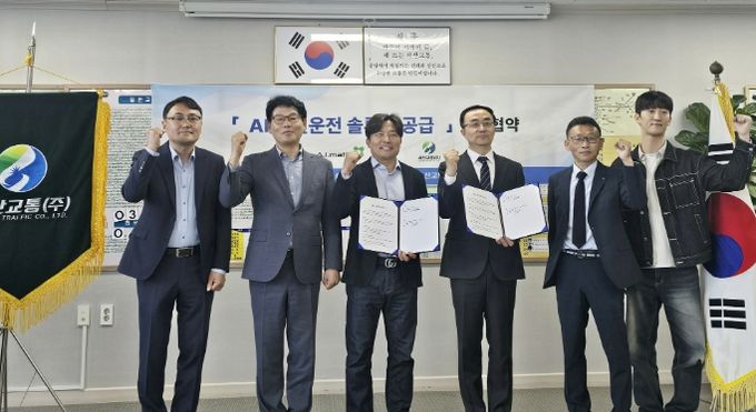 이날 협약식에는 안광헌 서산교통㈜대표이사, 이훈 ㈜에이아이매틱스 대표이사, 조완호 서산시 교통과장 등이 참석했다.