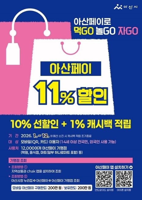 시 관계자는 “아산페이는 단순한 결제수단을 넘어 시민의 소비 혜택과 소상공인 매출 증대를 함께 견인하는 지역경제 순환 플랫폼으로 성장하고 있다”며 “앞으로도 시민이 편리하게 사용하고 소상공인이 실질적인 도움을 받을 수 있도록 아산페이 활성화 방안을 계속해서 강구하겠다”고 말했다.