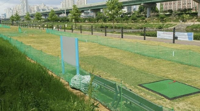 또한 안양천의 자연경관과 조화를 이루는 친환경 공간으로 조성했으며, 천연 잔디 코스와 함께 이동식 화장실, 쉼터 등 이용 편의시설도 갖췄다.