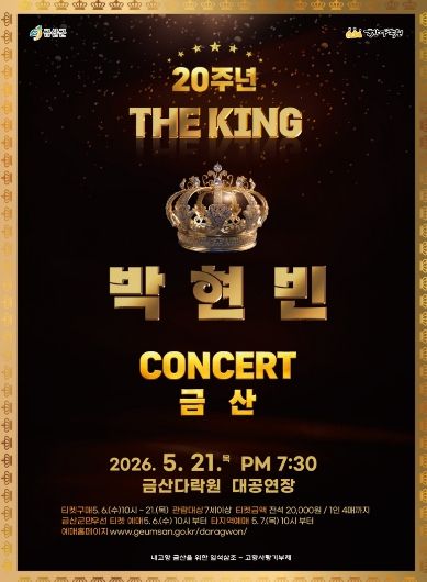 금산다락원 관계자는 “대한민국을 대표하는 트로트 가수 박현빈의 20주년 기념 공연을 통해 군민들에게 수준 높은 문화 향유 기회를 제공하고자 한다”며 “많은 관심과 관람을 바란다”고 전했다.