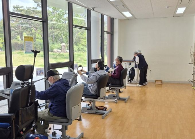 일산동구보건소 재활운동실은 이용자의 장애 유형·정도에 맞춰 운동할 수 있도록 전동상·하지운동기, 상·하지연동운동기(코끼리자전거), 기립기, 보행훈련 장비를 비롯해 다양한 신체기능 회복용 소도구를 갖추고 있다.