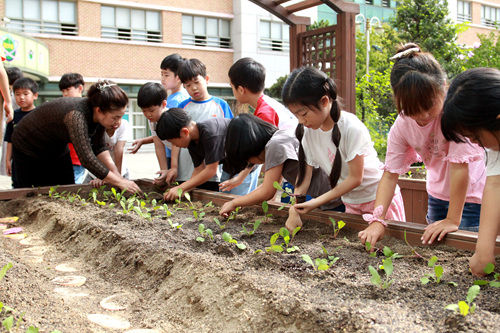 텃밭 조성은 시에서 지원했다. 용인시는 지난 3월부터 학교 자투리 공간에 텃밭을 조성해 교육장으로 활용토록 관내 30개 초등학교를 선정해 텃밭 설치비, 모종․농기구 등을 지원하고 있다. 또 도시농업 전문가를 학교로 파견해 생태교육을 할 수 있도록 돕고 있다.