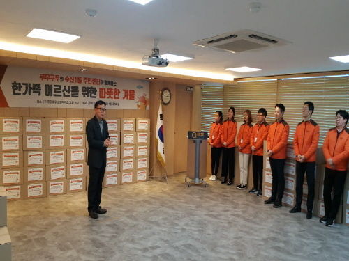 주식회사 쿠우쿠우 김영기 회장은 “추운 겨울에도 외로움 속에서 힘들게 사시는 어르신들을 조금이나마 돕기 위해 매년 물품 전달을 하고 있으며, 내년에는 더 큰 도움을 많은 분들에게 드릴 수 있도록 힘쓸 예정이다.” 며 뜻을 밝혔다.