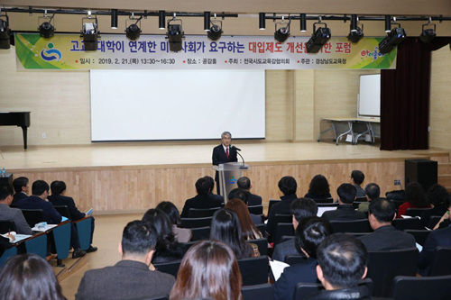 전국시도교육감협의회(회장 김승환)의 대입제도개선연구단(단장 박종훈 경남교육감)은 고교-대학이 연계하는 대입제도 개선 포럼을 2월 21일 경남교육청에서 개최하였다.