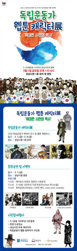 또 허영만, 김진, 박건웅, 김금숙 등 캐릭터전에 참여한 독립운동가 웹툰 참여작가들의 사인회와 성남시민 무료 캐리커처 행사 등도 이어진다.