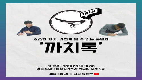 성남FC가 구단 유튜브 플랫폼을 활용한 웹예능 ‘까치톡’을 런칭해 라이트팬 확보에 나선다.