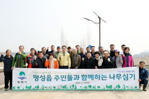 평택시(시장 정장선)는 지난 19일 정장선 평택시장, 권영화 평택시의회 의장, 주민 등 100여 명이 참석한 가운데 팽성읍 석봉리에서 ‘주민들과 함께하는 나무심기 행사’를 개최했다.