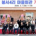 (중부시사신문) 파주시 파주읍 봉서4리 마을회관 개관식이 지난 7일 김경일 파주시장, 박정 국회의원을 비롯한 관내 기관장, 사회단체장, 지역 주민 등 100여 명이 참석한 가운데 개최됐다. 이날 행사는 기념사 및 축사, 마을회관 건립을 위해 애써주신 유공자에 대한 표창장 수여, 현판 제막식, 시설 관람 순으로 진행됐다. 파주읍 봉서산로 125번길 12-3에 위치한 봉서4리 마을회관은 대지면적 300㎡, 건축면적 129.78㎡의 지상 2층 규모로, 총사업비 3억 8,800만 원이 투입되어 조성됐다. 경로당과 주방시설 등을 갖춘 이 마을회관은 그동안 마땅한 쉼터가 없었던 봉서4리 주민들에게 편안하게 머물 수 있는 공간을 제공하게 됐다. 황명구 봉서4리 이장은 “마을회관 개관까지 지원을 아끼지 않은 파주시에 감사드리며, 오늘을 기점으로 봉서4리가 더 살기 좋은 마을이 되길 바란다”라고 전했다. 장연희 파주읍장은 “봉서4리 마을회관 신축을 진심으로 축하드린다”라며, “마을회관이 주민들이 서로 소통하고 교류하며 정을 쌓아가는 봉서4리 공동체의 중심이 되길 기대한다”라고 말했다.
