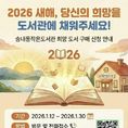 (중부시사신문) 동두천시 송내동 주민자치위원회는 주민자치 특색사업으로 조성된 ‘송내동 작은도서관’의 내실을 다지고 지역 공동체의 유대를 강화하기 위해 ‘2026년 희망도서 신청’ 접수를 시작한다고 밝혔다. 이번 희망도서 접수는 ‘책으로 사람과 사람을 잇는 소통의 거점’이라는 송내동 작은도서관의 운영 철학을 실현하기 위해 기획됐다. 주민이 직접 읽고 싶은 도서를 제안하고 서가를 함께 채워 나가는 과정을 통해, 도서관을 단순한 대출 공간을 넘어 주민 참여와 주인의식이 살아 있는 공동체 공간으로 발전시키겠다는 취지다. 2025년 7월 31일 개관한 송내동 작은도서관은 일상 속 독서 쉼터로서의 역할을 충실히 수행해 왔다. 특히 지식 제공을 넘어 이웃 간 안부를 나누고 정보를 공유하는 힐링·교류의 공간으로 자리매김하며 주민들의 호응을 얻고 있다. 희망도서 접수 기간은 2026년 1월 12일부터 1월 30일까지이며, 송내동 주민이라면 누구나 신청할 수 있다. 접수된 도서는 적합성 등 소정의 선정 절차를 거쳐 작은도서관의 정식 장서로 비치될 예정이다. 한명환 주민자치위원장은 “작은도서관은 단순한 도서 대여 공간
