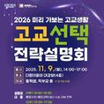 (중부시사신문) 화성시인재육성재단이 오는 9일 다원이음터 4층 대강당에서 관내 중학생 및 학부모를 대상으로 고교 선택 전략 설명회 ‘2026 미리 가보는 고교 생활’을 개최한다. 이번 설명회는 변화하는 고교 교육 체제에 대한 관내 중학생 및 학부모의 이해를 높여 서울권 학생들과의 입시 정보 격차를 해소하고, 주체적으로 진로·진학 맞춤형 고등학교 선택 전략을 설계할 수 있도록 지원하기 위해 마련됐다. 설명회에는 교육 전문 강사진이 참여해 ▲통합사회·통합과학 학습 전략 ▲2028 대학입시 대비 과목 선택 및 학습법 ▲일반고·자율고·특목고 선택 기준 ▲고교학점제 운영 방식 및 진로 기반 과목 선택 전략 등을 주제로 강연한다. 또한, 2026년 개관 예정인 화성시인재육성재단 영재교육원에 대한 안내를 비롯해 강연 후 질의응답 시간을 통해 학생과 학부모의 실질적인 진학 고민을 해소하는 시간도 마련돼 있다. 정명근 화성특례시장은 “빠르게 변화하는 진학 환경에서 학생들이 자신의 진로에 맞는 교육을 선택할 수 있도록 돕는 이번 설명회가 큰 도움이 되길 바란다”며 “화성특례시의 미래 인재들이 꿈을 펼칠 수 있도록 교