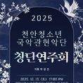 (중부시사신문) (재)천안시청소년재단 천안시청소년복합커뮤니티센터는 오는 13일 센터 대공연장에서 ‘천안청소년국악관현악단 1기 창단연주회’를 개최한다고 밝혔다. 천안청소년국악관현악단은 2025년 8월 30일 창단해 청소년들의 전통문화 예술 역량 강화와 문화 감수성 함양, 건전한 여가문화 형성을 목표로 운영되고 있다. 창단연주회는 그동안 갈고닦아 온 국악 실력을 무대에서 선보이는 첫 공식 공연으로, 청소년 단원들의 성장과 예술적 성취를 지역사회와 함께 나누기 위해 마련됐다. ‘천안청소년국악관현악단 1기 창단연주회’와 관련한 자세한 사항은 천안시청소년복합커뮤니티센터 교육사업팀으로 문의하면 된다. 윤여숭 천안시청소년복합커뮤니티센터 관장은 “청소년들이 국악을 통해 예술적 잠재력을 마음껏 발휘하고 꿈을 키워갈 수 있도록 앞으로도 지속적인 지원을 아끼지 않겠다”고 말했다.