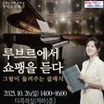 (중부시사신문) 군포시 중앙도서관이 2025년 하반기 ‘중앙도서관 인문숲’ 명사 초청 특강의 두 번째 무대를 마련한다. 오는 10월 26일 오후 2시부터 4시까지 중앙도서관 지하 1층 다목적실에서 피아니스트이자 클래식 해설가로 활발히 활동하고 있는 안인모 강사를 초청해 '루브르에서 쇼팽을 듣다 – 그림이 들려주는 클래식' 특강을 진행한다. 이번 특강은 안인모 강사의 저서 '루브르에서 쇼팽을 듣다'의 주요 내용을 바탕으로, 루브르 미술관의 작품들과 함께 쇼팽의 음악이 지닌 아름다움과 깊이를 탐색하며 그림과 음악, 스토리텔링으로 일상에 위로와 영감을 전할 예정이다. ‘중앙도서관 인문숲’ 명사 초청 특강은 시민들의 인문학적 소양을 확장하고 문화적 감수성을 높이기 위해 마련된 프로그램으로 하반기에는 문학·예술·역사 분야 전문가를 초청해 매월 한 차례씩 진행된다. 9월에는 유성호 교수가 윤동주 시인의 시 세계를 조명하는 강연을 성황리에 마쳤으며 11월에는 목승숙 교수의 카프카 [변신] 읽기 12월에는 이익주 교수의 한국의 족보 강연이 이어질 예정이다. 군포시민 100명을 대상으로 하는 이번 특강 참여 신청은