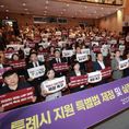 (중부시사신문) 용인특례시는 22일 오후 수지구 평생학습관 큰어울마당에서 ‘특례시 지원에 관한 특별법 제정 촉구 시민결의대회’를 열고 정부에 시민의 뜻을 담은 특별법 제정의 필요성을 강력히 촉구했다. ‘2025년 시민과의 대화’에 앞서 열린 결의대회에서 이상일 시장은 300여명의 시민과 함께 ‘특례시 지원 특별법 제정 촉구’, ‘과감한 재정·사무이양 실질적 특례 권한 보장’ 등의 내용이 담긴 피켓을 들고 특례시 지원 특별법 제정을 위한 구호를 외쳤다. 이 자리에서 용인특례시를 대표하는 시민 2인이 결의문을 낭독했고, 현장에서는 시민 서명운동도 진행됐다. 이날 결의대회에 참여한 이상일 시장과 용인특례시민들은 ▲특례시 지원 특별법 조속 제정 ▲특례시에 걸맞은 행정·재정 권한의 실질적 이양 ▲시민 스스로 특별법 제정 실현에 뜻을 모았다. 이상일 시장은 “인구 110만명을 돌파한 용인특례시는 광역시급 행정과 폭증하는 도시 인프라 확충 수요를 감당하고 있지만 현행 제도에서는 기초자치단체 수준의 권한과 재정지원을 받고 있어 여러 분야에서 제약을 받고 있다”며 “특례시가 특례시 발전에 합당한 행정권한, 재정 권한을 확보해야