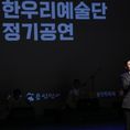 (중부시사신문) 용인특례시는 5일 오후 수지구 용인평생학습관 큰어울마당에서 ‘한우리예술단 정기공연’이 열렸다고 6일 밝혔다. 용인특례시가 후원하고 용인민예총이 주최·주관한 이날 행사는 우리 고유의 가락과 춤을 한자리에서 만날 수 있는 전통 공연으로 꾸며졌고, 이상일 시장은 1시간 40분간 진행된 공연을 끝까지 지켜본 뒤 공연단을 격려했다. 공연은 농악, 민요, 가야금, 검무 등으로 우리 민족 고유의 소리와 정서, 삶의 이야기를 그려내 큰 박수갈채를 받았다. 할미성 농악 보존회는 꽹과리, 장구, 북, 징, 태평소 등의 악기를 활용해 역동적인 농악 판굿을 선보였다. 용인 아리랑 보존회는 청춘가, 태평가, 창부타령 등 흥겨운 경기민요를 열창하며 분위기를 이끌었다. 이어 검무가 남지연씨의 검무공연이 펼져졌다. 앙상블 더 가야금은 대중에게 친숙한 고향의 봄, 꽃타령, 까투리타령 등을 가야금 병창으로 들려주며 국악의 매력을 선사했다. 한우리예술단은 화려한 가락이 돋보이는 설장구로 타악의 진수를 보여줬다. 이상일 시장은 축사에서 “올해로 32회를 맞이한 한우리예