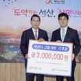 (중부시사신문) 충남 서산시는 지난 6일 한국농어촌공사 서산·태안지사가 고향사랑기부금 300만 원을 기탁했다고 밝혔다. 시는 이날 시청 시장실에서 이완섭 서산시장, 김학배 한국농어촌공사 서산·태안지사장 등이 참석한 가운데 기탁식을 개최했다. 전달된 기부금은 서산시에 주소를 두고 있지 않은 한국농어촌공사 서산·태안지사 직원들의 자발적인 참여로 마련됐다. 김학배 한국농어촌공사 서산·태안지사장은 “직원들이 자발적으로 뜻을 모은 기부라 더욱 의미가 깊다”라며 “농어촌공사는 지역 주민과 함께 성장하고 상생하는 기관으로서 앞으로도 지역사랑 실천에 앞장서겠다”라고 말했다. 이완섭 서산시장은 “지역과 공공기관이 함께 만들어가는 고향사랑기부제가 더욱 확산하길 바란다”라며 “이번 기탁은 지역사회 발전에 함께하는 모범 사례가 될 것”이라고 밝혔다. 한편, 고향사랑기부제는 기부자의 주소지를 제외한 지방자치단체에 기부하면 세액공제와 답례품 등의 혜택을 제공하는 제도다. 모금된 기부금은 취약계층 지원과 지역공동체 활성화, 주민 복리 증진 등에 활용된다. 시는 지난 3월 서산시와 보령시를