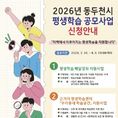(중부시사신문) 동두천시는 시민들의 자발적인 학습 문화를 확산하고 지역 평생학습 공동체를 활성화하기 위해 ‘2026년 평생학습 공모사업’ 신청을 오는 3월 30일부터 4월 3일까지 접수한다고 밝혔다. 이번 공모사업은 총 3개 분야로, 시민들이 원하는 시간과 장소에서 배움을 이어갈 수 있도록 맞춤형 학습 기회를 제공하기 위해 마련됐다. 첫 번째 분야는 '평생학습 배달강좌 지원사업'으로, 학습자가 원하는 시간과 장소에서 학습할 수 있는 수요자 중심의 교육 서비스다. 6인 이상의 성인으로 구성된 학습 모임 총 15개를 선정하여 강사비 70만 원을 지원한다. 이를 통해 시민들은 원하는 주제와 장소에서 자유롭게 학습 활동을 펼칠 수 있다. 두 번째 분야는 근거리 평생학습센터인 '우리동네 학습공간' 지원사업이다. 시민들의 생활권 내 학습권을 보장하고 지역 내 평생학습 거점을 활성화하는 데 목적이 있다. 신규 또는 기존에 지정된 '우리동네 학습공간' 장소를 대상으로 하며, 프로그램 운영 시 1개소 당 150만 원의 학습 운영비를 지원한다. 이는 지역 내 유휴 공간을 학습의 장으로 탈바꿈시켜 지속 가능한 평생학습 생태계를 조
