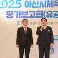 (중부시사신문) ‘2025 아산시 체육진흥사업 평가보고회’가 지난 18일 온양관광호텔에서 열렸다. 아산시체육회가 주최·주관한 이날 행사에는 오세현 아산시장과 홍성표 아산시의회 의장, 복기왕 국회의원, 신세균 아산교육지원청 교육장을 비롯해 임도훈 아산시체육회장과 체육회 관계자 등 520여 명이 참석해 성황을 이뤘다. 행사는 1부 평가보고회, 2부 유공자 시상, 3부 화합의 장 순으로 진행됐다. 평가보고회에서는 올 한 해 추진된 체육진흥사업의 성과를 공유하고, 내년도 아산시 체육 발전 방향을 논의하는 시간이 마련됐다. 이어 진행된 유공자 시상에서는 한 해 동안 아산시 체육 발전을 위해 헌신한 체육인들에게 표창이 수여됐다. △아산시장 표창 김건우 외 20명 △아산시의회 의장 표창 김병준 외 20명 △복기왕 국회의원 표창 강보식 외 15명 △아산교육지원청 교육장 표창 김소율 외 10명 △아산시체육회장 표창 김경환 외 20명 등이 체육 활성화와 저변 확대에 기여한 공로를 인정받았다. 오세현 아산시장은 “2025년 아산시 체육진흥사업 평가보고회 개최를 진심으로 축하드린다”며 “수상자 여러분께도 축하의 인사를