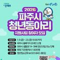 (중부시사신문) 파주시는 청년의 자발적인 사회참여를 확대하고 다양한 활동 경험을 제공하기 위해 녪년 파주시 청년동아리 지원사업’에 참여할 청년동아리를 오는 23일까지 모집한다고 밝혔다. ‘청년동아리 지원사업’은 공통의 관심사를 가진 청년들이 자율적으로 구성한 동아리 활동을 지원하는 사업으로, 올해는 전년도 우수동아리 3팀을 포함해 총 11개 팀을 선정할 계획이다. 선정된 동아리는 팀별로 최대 100만 원 이내의 보조금이 차등 지원되며, 지원금은 교육비, 홍보비, 재료비 등 동아리 운영에 필요한 경비로 사용할 수 있다. 신청 대상은 파주시에 주민등록을 두고 있거나 파주시 소재 학교·직장·사업장 등에서 활동 중인 19세부터 39세 이하 청년으로, 최소 3인 이상으로 구성된 동아리다. 월 1회 이상 정기적인 활동이 가능해야 하며, 단순 친목 모임이나 일회성 행사, 영리 목적의 활동, 정치·종교 활동을 목적으로 하는 동아리는 지원 대상에서 제외된다. 신청은 파주시청 누리집을 통해 가능하며, 사업 신청서, 활동 계획서, 동아리 회원 명단, 활동비 집행계획서 등 관련 서류를 제출해야 한다. 신청 기한은 오는 23일 18시