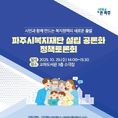 (중부시사신문) 파주시는 오는 29일 14시, 교하도서관 3층 소극장에서 ‘파주시복지재단 설립 공론화 정책토론회’를 개최한다고 밝혔다. 이번 토론회는 파주시복지재단 설립을 앞두고 시민, 전문가, 현장 종사자의 다양한 의견을 수렴해 재단 설립의 필요성과 발전 방향을 함께 모색하기 위해 마련됐다. 토론회는 김민철 서영대학교 사회복지행정학과 교수의 기조 강연을 시작으로, 파주시 복지기획팀장의 주제 발표가 이어진다. 이어 한지원 두원공과대학교 교수가 좌장을 맡아 토론을 진행하며, 이보경 파주시문산종합사회복지관 관장, 오민수 경기복지재단 선임연구위원, 박윤근 화성시복지재단 사업본부장 등이 참석해 열띤 논의를 펼칠 예정이다. 토론에서는 ▲파주시복지재단 설립의 필요성과 추진 개요 ▲파주시 여건을 반영한 복지재단의 발전 방향 ▲재정 자립 및 지속가능성 확보 방안 등 다양한 주제가 심도 있게 논의될 예정이다. 김은숙 복지정책국장은 “파주시복지재단은 시민의 삶을 보다 세밀하게 지원하고, 지역 현장의 목소리를 반영한 ‘파주형 복지모델’을 실행할 구심점이 될 것”이라며, “이번 토론회를 통해 파주시 복지 정책의 새로운