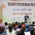 (중부시사신문) 군포시는 군포시장애인종합복지관 주관으로 10월 31일 장애인센터 내 다목적실에서 2025년 장애인문화예술축제를 개최했다. 이번 축제는 2025년 경기도 장애인 문화예술진흥사업으로 선정되어 경기도와 군포시의 지원으로 장애인과 비장애인이 함께 어우러져 창의적이고 감동적인 공연과 전시가 펼쳐졌다. 하은호 시장과 시낭송동아리 ‘수리담시’회원의 시낭송 공연으로 시작한 행사는 발달장애인으로 이루어진 어울림합창단의 합창공연과 한세대학교 음악학과 학생들의 관현악 공연 등으로 이어졌다. 다채로운 공연과 함께 도예토, 퀼트, 사군자, 미술, 사진 등의 전시는 예술의 무한한 감동을 시민과 함께 나누는 뜻깊은 시간이 됐다. 특히 누구나 함께 즐길 수 있는 캘리그라피와 가죽공예 체험프로그램도 마련되어 예술의 장벽을 낮추고 참여의 폭을 넓혔다. 하은호 군포시장은 “시민 모두가 함께하는 문화예술의 장을 확장하는 계기가 되길 바란다”라며 “앞으로도 장애인 문화예술 지원에 최선을 다해 포용과 화합의 도시를 만들어가겠다”고 말했다.