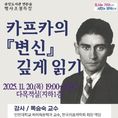 (중부시사신문) 군포시 중앙도서관은 2025년 하반기'중앙도서관 인문숲'명사 초청 특강의 세 번째 무대로 오는 11월 20일 저녁 7시부터 9시까지 중앙도서관 지하 1층 다목적실에서 인천대학교 독어독문학과 목승숙 교수를 초청해 '카프카의 [변신] 깊게 읽기' 특강을 진행한다. 인천대학교 독어독문학과 교수인 목승숙 교수는 한국카프카학회 회장(2023~2024)을 역임한 국내 대표적인 카프카 연구자로 이번 강연에서 카프카의 대표작 [변신]을 20세기 초 유럽의 문화적 콘텍스트 속에서 새롭게 읽어내며, 오늘날의 독자에게도 여전히 유효한 [변신]의 현재적 의미와 울림을 짚어볼 예정이다. 참가자들은 작품 속 인물과 상징, 존재의 불안과 소외의 문제를 통해 인간과 사회, 그리고 ‘나’를 돌아보는 깊은 사유의 시간을 갖게 될 것이다. ‘중앙도서관 인문숲’ 명사 초청 특강은 시민들의 인문학적 소양을 넓히고 문화적 감수성을 높이기 위한 프로그램으로 올 하반기에는 문학·예술·역사 분야 전문가를 초청해 매월 한 차례씩 진행되고 있다. 이번 11월 특강은 군포시민 70명을 대상으로 진행되며 군포시도서관 누리집에서 선착순으로 신청 접