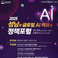 (중부시사신문) 성남시는 11월 14일 오후 4시 시청 2층 모란관에서 ‘2025 성남을 글로벌 AI 허브로 정책포럼’을 개최한다. 이번 포럼은 성남시 인공지능(AI) 산업의 현재를 진단하고, 제4차 산업혁명 시대의 기술 변화에 맞춰 성남시가 세계적인 AI 혁신 거점도시로 도약하기 위한 정책 방향을 모색하기 위해 마련됐다. 좌장은 강대희 서울대학교 의과대학 교수가 맡으며, △‘AI 반도체 동향 및 추진현황’(황태호 한국전자기술연구원 반도체 디스플레이 연구본부장) △‘AI 공급망: 중동의 사례를 기반으로’(이정우 ㈜지에스아이엘 대표이사) △‘AI for Every Citizen’(황희 ㈜카카오헬스케어 대표이사) △‘초급변 AI 콘텐츠 시대, K-컬처 글로벌 창의인재 육성’(정무식 가천대 게임·영상학과 교수) 등 네 개 주제 발표가 진행된다. 이어지는 지정 토론에는 정송 KAIST AI대학원 원장, 유태준 ㈜마음에이아이 대표, 이덕희 성남산업진흥원 전략산업본부장, 김의성 성남시정연구원 경제사회연구실장이 참여해 발표 주제별 심층 토론을 이어갈 예정이다. 성남시는 이번 포럼에서 제시된 ‘AI·4차산업특별도
