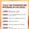 (중부시사신문) 강원문화재단에서는 강원지역 우수 콘텐츠 발굴 및 지역 콘텐츠 기업의 성장을 도모하기 위한 공모사업을 진행한다. 31일까지 접수하는 '지역특화콘텐츠개발 제작지원사업'은 강원 지역의 문화, 관광, 역사, 전통, 인물, 생태자원 등 지역 특화 소재를 활용한 콘텐츠의 개발과 사업화를 지원한다. 강원특별자치도 소재 콘텐츠 기업을 대상으로 하며, 지원 분야는 콘텐츠 산업 전분야이다. 재단은 공모를 통해 3개 과제 내외를 선정할 예정이며, 과제당 최대 2억원을 지원하고 선정 과제의 완성도와 사업성을 높이기 위해 맞춤형 전문가 컨설팅을 제공한다. '2026년 지역 대표 글로컬 콘텐츠 제작․재투자 지원' 사업의 지역 공모도 함께 진행된다. 해외 투자유치·공동제작·진출 계약이 되어있거나 협약 기간 내 체결될 예정인 콘텐츠를 지원하며, 4월 2일까지 공모를 진행한다. 이번 공모에 대한 자세한 내용은 강원문화재단 홈페이지 또는 강원영상위원회 홈페이지를 통해 확인할 수 있으며, 문의는 강원영상위원회 로 하면 된다. 신현상 대표이사는 “지역이 가진 고유한 스토리는 가