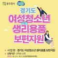 (중부시사신문) 동두천시는 2026년 ‘경기도 여성청소년 생리용품 보편 지원사업’과 관련해 여성청소년의 건강한 성장 지원을 위해 경기지역화폐 신청을 받는다고 밝혔다. 동두천시에 거주하는 11세~18세(2008. 1. 1.~2015. 12. 31. 출생) 여성청소년이면 누구나 신청할 수 있다. 다만 성평등가족부의 ‘여성청소년 생리용품 바우처’ 사업과는 중복 신청은 불가하며, 연 1회 신청 시 최대 168,000원까지 지원받을 수 있다. 온라인 신청은 경기민원 24 사이트에서 2026년 3월 4일부터 3월 31일까지 가능하다. 오프라인 신청은 2026년 3월 4일부터 예산 소진 시 주소지 관할 동 행정복지센터에서 접수한다. 지원금(경기지역화폐)은 2026년 12월 31일까지 사용해야 하며, 기간 내 사용하지 않은 금액은 2027년 1월 1일 자동 소멸된다.