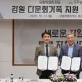 (중부시사신문) 강원특별자치도는 10월 27일 오후 3시 30분, 도청 본관2층 소회의실에서 재단법인 박기범재단과 강원 다문화가족 지원을 위한 업무협약을 체결했다. 박기범재단은 2018년 설립 이후, 올바른 기부문화 확산과 소외계층 지원을 목표로 다양한 사회공헌 사업을 펼쳐왔다. 특히, 도내 다문화 가족을 대상으로 꾸준한 지원과 후원활동을 이어오며, 이들이 안정적으로 정착할 수 있는 기반을 마련하는 데 기여해왔다. 이번 협약은 다문화가족이 지역사회에 안정적으로 정착하고 성장할 수 있는 환경을 조성하며, 상호 존중의 문화를 확산하기 위해 마련된 자리다. 협약에 따라 양 기관은 ▲다문화가족과 지역사회의 상생을 위한 사회공헌 프로그램 운영 ▲다문화 이해 교육자료 개발 및 보급 ▲교육‧복지 사각지대에 놓인 청소년과 다문화학생 지원 ▲다문화가정 청소년의 학업 및 진로교육 지원 등 다양한 사업을 함께 추진할 예정이다. 김진태 도지사는 “대한민국의 인구 절벽 문제를 해결하기 위해 애써주시는 점에 감사드린다”며, “도에서도 다문화분들을 한국에 모셔오는 케이(K)-비자 사업에 많은 관심을 가지고 있다”고 말했다.