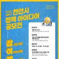 (중부시사신문) 천안시는 시민이 직접 참여해 참신한 아이디어로 시정 변화를 만들어가는 ‘2025 하반기 천안시 정책 아이디어 공모전’을 개최한다고 21일 밝혔다. 이번 공모전은 ‘참.여.해.(참신한 제안, 여럿이 함께, 해내는 변화)’를 슬로건으로, 시민의 창의적인 제안을 통해 참여 중심의 시정 문화 확산을 목표로 한다. 공모전은 천안시민 또는 천안시 소재 학교·사업장에 소속된 누구나 참여 가능하다. 공모전 접수는 다음 달 21일까지 천안시 공모전 누리집 또는 우편, 방문 등의 방법으로 제안서를 제출해 응모하면 된다. 접수된 제안은 실무 심사 및 관련 부서 의견수렴 등 다양한 심사과정을 거쳐 12월 중 공모전 누리집에 수상작을 발표할 예정이며, 수상자에게는 시장상과 함께 최대 500만 원의 상금이 수여된다. 공모전과 관련된 자세한 내용은 천안시 공모전 누리집 또는 정책기획과 정책개발팀(041-521-5249)을 통해 확인할 수 있다. 박은주 정책기획과장은 “정책 아이디어 공모전은 시민의 제안이 행정의 변화를 이끄는 시작점”이라며 “참신한 제안으로 시민과 함께 천안의 변화를 만들어가길 기
