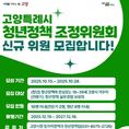 (중부시사신문) 고양특례시는 청년이 시정의 주체로 참여해 정책을 함께 만들어갈 수 있도록 고양시 청년정책조정위원회 청년 및 전문가 위원을 공개 모집한다고 밝혔다. 이번 모집은 10월 28일까지 진행되며, 전문가 2명과 청년 8명 이내 등 총 10명 이내의 신규 위원을 위촉할 예정이다. 위원의 임기는 위촉일로부터 2년이며, 1회 연임이 가능하다. 고양시 청년정책조정위원회는 「고양시 청년 기본 조례」 제9조 및 제10조에 따라 설치된 법정위원회로, ▲청년정책 기본계획 및 시행계획 수립·변경 ▲청년정책 추진 실적 점검 및 평가 ▲청년정책 제도 개선 및 관련 사업 조정 등 고양시 청년정책 전반에 관한 주요 사항을 심의·자문하는 역할을 수행한다. 전문가 부문은 청년정책에 대한 학식과 경험이 풍부하며, 특히 청년 취·창업 지원, 진로지도, 직업교육 등 관련 분야의 연구 또는 실무경험이 있는 사람이 지원할 수 있다. 청년 부문은 청년정책에 관심이 있는, 공고일 기준 만 18세 이상 39세 이하의 고양시 거주 청년이면 누구나 신청할 수 있다. 시 관계자는 “청년의 시각과 목소리가 고양시 정책에 반영될 수 있도록