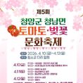 (중부시사신문) 청양군 청남면 주민자치회(회장 이민구)가 완연한 봄을 맞아 벚꽃의 낭만과 지역 특산물의 우수성을 동시에 즐길 수 있는 ‘2026년 제5회 청남면 토마토·벚꽃 문화축제’를 오는 4월 10일부터 12일까지 3일간 개최한다. 청남면 청소교 다리 일원에서 펼쳐지는 이번 축제는 주민들이 직접 기획하고 참여하는 ‘주민 주도형 화합 축제’로, 방문객들에게 청정 청양의 맛과 멋을 선사할 예정이다. 축제 첫날인 10일 오후 4시부터는 드럼, 색소폰, 장구 난타 등 주민들이 그동안 갈고닦은 실력을 뽐내는 식전 공연이 열리며 오후 6시 개막식으로 축제의 서막을 알린다. 11일에는 지역 초등학생들의 깜찍한 북춤 공연과 축제의 백미인 ‘청남면민 노래자랑’이 열려 흥겨운 축제 분위기를 이어간다. 마지막 날인 12일에는 북한예술단의 특별 공연과 초대가수 무대가 축제의 대미를 장식한다. 축제장 곳곳에 설치된 20여 개의 상설 부스에서는 청남면의 정취를 온몸으로 느낄 수 있다. 특히 청남 방울토마토와 완숙 토마토를 비롯해 표고버섯, 꿀 등 엄선된 지역 농특산물을 산지 직송으로 저렴하게 구