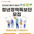 (중부시사신문) 하남시는 청년의 시선으로 시정을 함께 만들어갈 ‘제4기 청년정책특보단’을 오는 2월 19일까지 공개 모집한다고 밝혔다. 모집 대상은 하남시에 거주하거나 활동하는 만 19세부터 39세 이하 청년으로, 시정에 관심을 갖고 정책 각 분야의 발전에 기여하고자 하는 청년이라면 누구나 지원할 수 있다. ‘제4기 청년정책특보단’은 총 6명(청년명예시장 1명, 청년정책특보단 5명)으로 구성되며, 이번 모집에서는 청년정책특보단 3명을 선발한다. 선발은 1차 서류심사와 2차 대면 인터뷰를 거쳐 진행되며, 특히 이번 모집에서는 SNS 콘텐츠 제작 및 소셜미디어 활동 경험자에게 가점을 부여한다. 최종 선발자는 3월 중 발표 예정이며, 위촉식 후 청년정책특보단으로서 공식 활동을 시작하게 된다. 선발된 청년정책특보단은 ▲정기회의 운영 ▲청년정책 의제 발굴 및 제안 ▲청년정책 홍보 ▲시 행사 참여 등 다양한 활동을 수행한다. 또한 활동 기간 동안에는 소정의 활동비가 지급된다. ‘청년명예시장 및 청년정책특보단’은 하남시 민선 8기 공약에 따라 2023년 도입된 청년 참여 정책으로, 청년의 다양한 목소리를 시정에