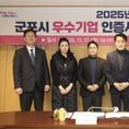 (중부시사신문) 군포시는 17일 시청 3층 중회의실에서 ‘2025년 군포시 우수기업 인증서 및 현판 수여식’을 열고 5개 우수기업에 인증서와 현판을 수여했다. ‘우수기업 선정사업’은 2022년부터 시작하여 올해 4번째로 추진하는 사업으로 일자리 창출, 세수 증대 등 지역경제 활성화에 기여한 기업을 선정하여 인센티브를 부여하는 사업이다. 선정된 우수기업은 인증기간(3년) 동안 군포시 중소기업 육성자금 지원 시 추가 이차보전, 군포시 관내 공영주차장 이용 시 주차요금 감면, 협약병원 의료비 지원 등의 인센티브가 부여된다. 하은호 군포시장은 “어려운 경제 상황 속 관내 우수한 기업에 활력을 불어넣기 위한 우수기업 선정사업에 관심 가져주심에 감사드리며, 앞으로도 기업지원 사업을 다각화하여 기업 경영하기 좋은 환경을 만들겠다”고 말했다. 올해 선정된 군포시 우수기업은 △(주)아이씨에이치 △㈜지비티코리아 △주식회사예선테크 △듀라텍 주식회사 △㈜트리플닷 으로 총 5개 기업이다.