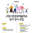 (중부시사신문) 고양문화재단은 시민들에게 참신하고 수준 높은 문화예술교육 서비스를 제공하기 위해 ‘고양시민문화예술학교’(아람문예아카데미 및 어울림문화학교) 강사 인력풀(POOL)을 상시 모집한다. 이번 인력풀 구축 시스템은 변화하는 문화예술교육 수요에 대응하여 다양하고 미래지향적인 교육 프로그램을 운영하기 위해 마련됐다. 역량 있는 전문 강사진을 충분히 확보함으로써 완성도 있는 교육 프로그램을 적시에 제공하는 것은 물론, 고양시 문화예술교육 생태계의 기반을 더욱 견고히 다진다는 계획이다. ■ 전공·경력 갖춘 전문가라면 누구나 지원 가능 ‘고양시민문화예술학교’ 강사 인력풀(POOL) 모집은 문화예술 및 인문학 관련 전 분야를 아우른다. 해당 분야의 ▲전공자 ▲자격증 소지자 ▲강의 및 실무 경력자 등 전문성을 갖춘 누구나 지원할 수 있다. 장르를 제한하지 않는 폭넓은 인력풀 구성을 통해 시민들의 다양한 문화예술교육 향유 욕구를 충족시킬 예정이다. ■ 이메일 접수 절차 및 제출 서류 안내 강사 등록 희망자는 고양문화재단 누리집 내 ‘문화예술교육 공지사항’에서 신청 양식을 내려받아 작성한 뒤 이메일로 제출하면 된다.