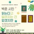 (중부시사신문) 김포시 장기도서관은 2025년 공공도서관 독서프로그램 운영 지원사업으로 '시인을 만나다-박준 시인'을 오는 11월 9일, 오후 2시부터 4시까지 장기도서관 대강당에서 운영한다고 밝혔다 문단계의 아이돌로 알려진 박준 시인은 '운다고 달라지는 일은 아무것도 없겠지만', '당신의 이름을 지어다가 며칠은 먹었다', '우리가 함께 장마를 볼 수도 있겠습니다' 등 청년층부터 노년층까지 전 세대를 아우르는 작품으로 많은 사랑을 받고 있다. 이번 강연은 '문학과 예술은 어떻게 우리의 일상 속으로 스며드는가'를 주제로 우리 곁에서 빛을 내는 일상이 어떻게 문학으로 변모되는지, 시와 문학이 다른 이의 눈빛과 마음을 읽는 일과 어떻게 자연스럽게 연계되는지, 내 삶의 궤적을 얼마나 온전히 기록할 수 있는지를 알아보고자 한다. 강의 신청은 10월 14일 오전 10시부터 장기도서관 홈페이지 문화행사신청 코너 또는 김포시 통합예약시스템을 통해 온라인으로 진행되며, 대상은 김포시민 100명을 선착순으로 모집한다.