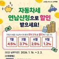 (중부시사신문) 의정부시는 자동차세를 1월에 연납으로 납부하면 연간 세액의 최대 4.5%를 공제받을 수 있다고 밝혔다. 자동차세 연납은 매년 6월과 12월에 정기적으로 납부하는 자동차세를 1월에 미리 한꺼번에 납부할 경우 세액 공제 혜택을 받을 수 있는 제도로, 납세자의 신청 및 납부가 필요하다. 시는 지난해 연납한 차량에 대해서는 별도의 신청 없이 납부서를 일괄 발송했으며, 연납 이력이 없는 신규 차량은 납세자가 직접 신청해야 한다. 연납 신청은 ▲자동응답시스템 ▲위택스 ▲시청 세정과 ▲카카오톡 채널 ‘의정부시 지방세 상담’을 통해 가능하다. 납부 방법은 ▲자동응답시스템을 통한 신용카드 또는 가상계좌 납부 ▲위택스 및 지로 누리집에서의 조회‧납부 ▲전국 은행 자동입출금기(CD/ATM)를 이용한 신용카드 또는 현금(통장) 납부 등이 있다. 이교재 세정과장은 “자동차세 연납 제도는 세액을 절감할 수 있는 좋은 기회로, 많은 시민이 연납 제도를 활용해 절세 혜택을 받으시길 바란다”고 말했다.
