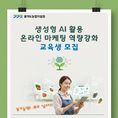 (중부시사신문) 경기도농업기술원은 오는 12일까지 ‘생성형 AI 활용 온라인 마케팅 역량강화 교육’에 참여할 농업인 30명을 모집한다. 교육은 12월 5일과 10일 이틀간 농업기술원 내 정보화교육장에서 진행되며, 약 10시간 동안 ▲AI를 활용한 마케팅 전략수립 ▲온라인 마케팅을 위한 AI의 활용 ▲생성형 AI활용 상세페이지 제작 등 이론과 실습을 병행한다. 현재 유튜브나 스마트스토어 등 온라인 마케팅을 진행 중인 가운데, AI 활용을 희망하는 경기도 농업인이라면 누구나 무료로 교육에 참여할 수 있다. 신청 방법은 시군농업기술센터에 문의하거나 네이버 폼을 제출하면 된다. 온라인 신청자는 무작위 추첨으로 선발된다. 성제훈 경기도농업기술원장은 “최근 모든 분야에서 생성형 AI의 활용이 필수적인 요소로 자리 잡고 있다”며 “교육을 통해 경쟁력 있는 온라인 마케팅을 펼쳐 실질적인 농가소득 향상으로 이어지길 바란다”고 말했다.