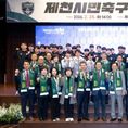 (중부시사신문) 제천시민축구단이 지난 24일, 제천더그랜드컨벤션센터에서 창단식을 개최하고 2026시즌 K4리그 참가를 향한 공식 출범을 선언했다. 이날 행사에는 김창규 제천시장(구단주), 박영기 제천시의회 의장을 비롯해 충청북도체육회와 축구협회 관계자, 지역 체육계 및 후원 기관 관계자 등이 참석해 시민구단의 출범을 함께했다. 창단식은 창단 추진 경과보고를 시작으로 구단기 전달과 축사에 이어 엠블럼 제막, 창단 지원금 전달, 후원 협약, 유니폼 공개, 선수단 및 운영진 소개, 창단 선언 순으로 진행됐다. 특히 공식 엠블럼은 시민 공개투표를 통해 최종 확정돼 ‘시민이 주인인 구단’이라는 운영 철학을 상징적으로 보여줬다. 또한, 낫소(공식용품), 세명대학교(홍보마케팅), 제천서울병원(의료지원)과의 협약 체결, 충청북도체육회의 창단 지원금 전달로 지역 사회와 체육계가 함께 참여하는 운영 기반을 다졌다. 제천시민축구단은 사무국 구성과 감독 및 코치진 선임, 선수 공개 테스트를 거쳐 팀 구성을 완료했으며, 2026시즌 K4리그 참가를 확정하고 첫 시즌 준비에 들어갔다. 김창규 제천시