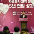 (중부시사신문) 용인특례시는 자원봉사센터가 28일 용인센트럴코업호텔에서 ‘2025년 자원봉사대학 봉사단 성과보고회’를 열었다고 밝혔다. 이번 보고회는 지난 1년 동안 시민 자원봉사 리더들이 지역 곳곳에서 실천해 온 다양한 봉사활동을 공유하고 내년도 활동 방향을 모색하기 위해 마련됐다. 행사에는 이상일 시장과 자원봉사대학 1~5기 봉사단 92명이 참석했다. 이상일 시장은 축사에서 “매달 봉사활동에 참여하고, 재난 현장과 지역 축제 등 도움이 필요한 곳마다 앞장서 주신 여러분의 헌신에 깊이 감사드린다”며 “봉사는 말로는 쉽지만 각자의 일상 속에서 시간을 내 실천하기란 결코 쉽지 않은데, 여러분 덕분에 용인특례시가 더 살기 좋은 생활공동체로 발전하고 있다”고 말했다. 이 시장은 “자원봉사대학 1~5기를 통해 234명의 봉사자가 배출됐고, 참여율도 69%에 이를 만큼 많은분이 적극적으로 동참해 주셨다”며 “앞으로 인구 150만을 내다보는 대도시로 성장하는 만큼 도움이 필요한 곳도 더 많아질 텐데, 여러분들의 역할을 기대하며 시도 응원하고 지원하겠다”고 했다. 이 시장은 올 한 해 봉사활동에 헌