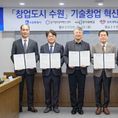 (중부시사신문) 수원특례시가 경기창조경제혁신센터, 4개 대학과 협력해 대학의 기술창업을 발굴하고, 지원한다. 수원시와 경기창조경제혁신센터, 4개 대학은 30일 시청 상황실에서 ‘창업도시 수원 기술창업 혁신 관·학 업무협약’을 체결하고, 협력을 약속했다. 협약 기관들은 대학의 우수한 연구 성과, 인적 자원을 보유한 우수 기술창업기업을 발굴하고, 기술의 사업화를 촉진하기 위해 협력하기로 했다. 수원시는 수원기업새빛펀드의 수원기업 의무투자 약정액으로 투자를 유치하고, 경기창조경제혁신센터는 기업에 멘토링, 엑셀러레이팅(스타트업이 빠르게 성장하도록 지원), 밋업(투자자 유치 행사), 아이알(IR)데이, 투자 등을 지원한다. 대학교는 실험실 창업·창업 보육기업을 추천한다. 이날 협약을 바탕으로 대학창업 특화 프로그램인 ‘새빛 유-테크(U-Tech).판’을 시작한다. 경기창조경제혁신센터의 엑셀러레이팅 인프라를 활용해 우수한 기술력과 성장 잠재력을 갖춘 창업기업을 발굴하고, 기업의 투자 유치 역량을 극대화하는 프로그램이다. 3대 핵심 목표는 ‘인프라 적극 활용’, ‘선순환 구조 구축’, ‘실질적 투자 집행’이다.