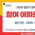 (중부시사신문) (재)오산문화재단은 2026년 찾아가는 문화나눔 사업의 일환으로 추진되는 '2026 상반기 찾아가는 아파트 콘서트' 지원 사업에 참여할 오산시 관내 아파트를 모집한다고 밝혔다. '찾아가는 아파트 콘서트'는 아파트 자체 행사와 연계해 공연 무대와 공연팀을 지원하는 사업으로, 입주민들이 직접 지역 문화예술 행사를 기획·운영하고 향유하는 능동적인 문화 주체로 성장할 수 있도록 돕기 위해 마련됐다. 재단은 올해 상반기인 4월 24일부터 6월 30일 사이 시화전, 야시장, 장기자랑, 북 페스티벌, 각종 캠페인 등 입주민 대상 자체 행사를 계획하고 있는 아파트가 본 사업을 활용할 경우, 행사 운영의 완성도를 높이는 것은 물론 예산 절감에도 도움이 될 것으로 기대하고 있다. 상반기 참여 신청 접수는 1월 30일(금)부터 2월 12일(토)까지 진행되며, 서류 검토를 거쳐 2월 24일 상반기 참여 아파트 4곳을 선정하기 위한 심의가 실시될 예정이다. 선정 결과는 2월 27일 이내 오산문화재단 홈페이지를 통해 공고되며, 세부 일정은 재단 사정에 따라 변경될 수 있다. 심의 과정에서는 아파트 자체 행사